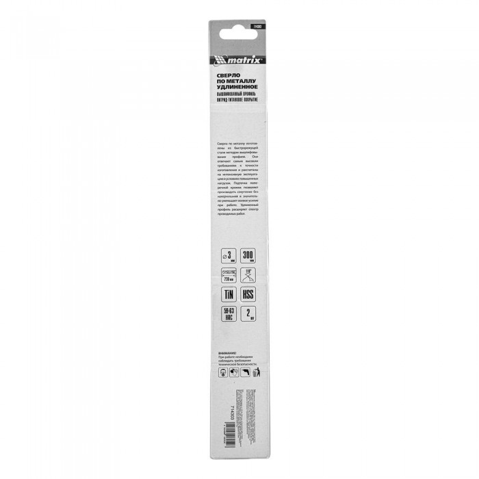 Сверло спиральное по металлу 3 x 300 мм, HSS, 2шт, нитридтитановое покрытие Matrix (714303)