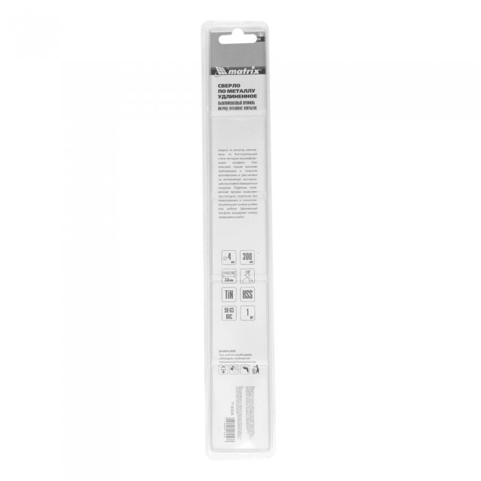 Сверло спиральное по металлу 4 x 300 мм, HSS, нитридтитановое покрытие Matrix (714304)