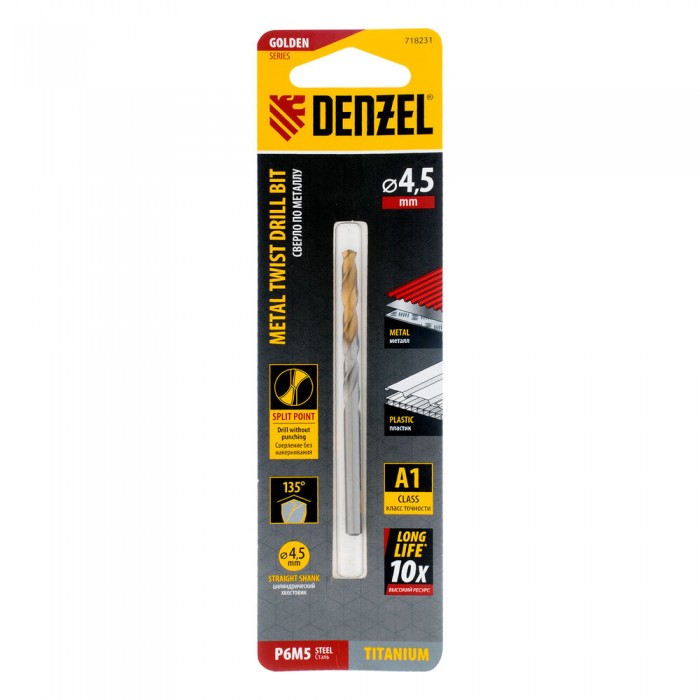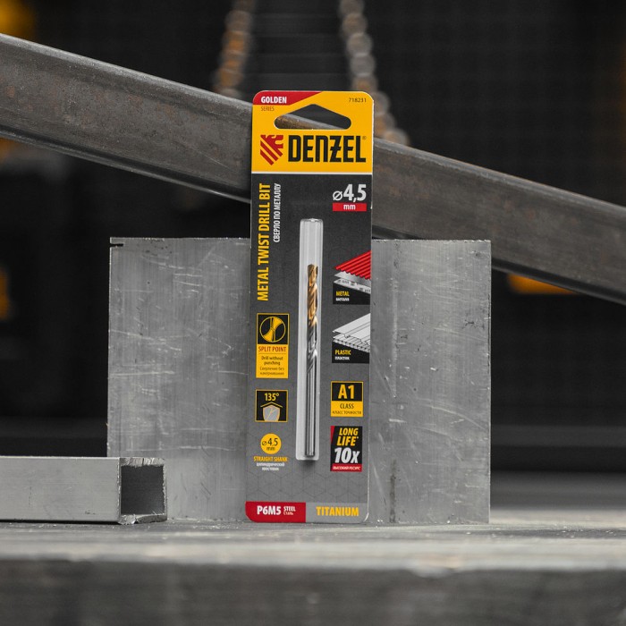 Сверло спиральное по металлу 4,5 x 80 мм, Р6М5, Golden Tip Denzel (718231)