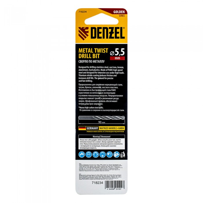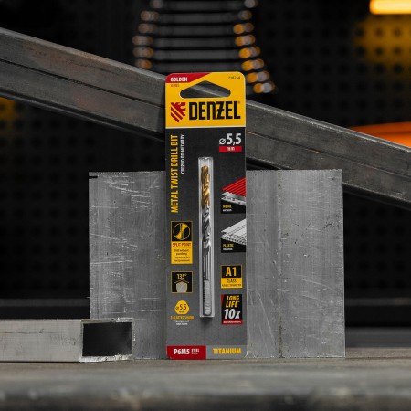 Сверло спиральное по металлу 5,5 x 93 мм, Р6М5, Golden Tip Denzel (718234)