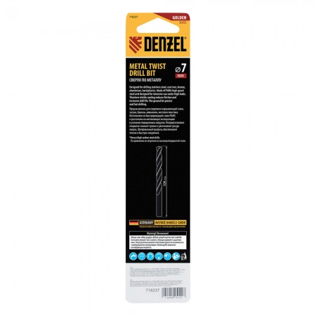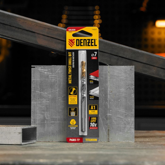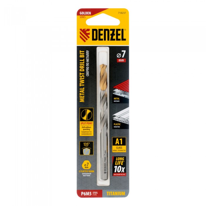 Сверло спиральное по металлу 7,0 x 109 мм, Р6М5, Golden Tip Denzel (718237)