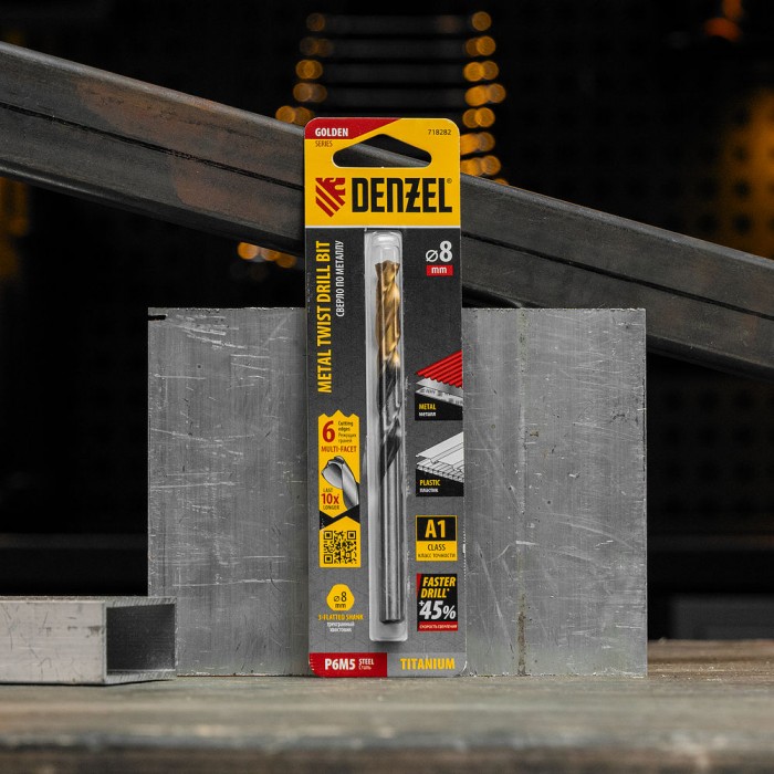 Сверло спиральное по металлу 8 x 117мм, Р6М5, Golden Tip, многогранная заточка Denzel (718282)