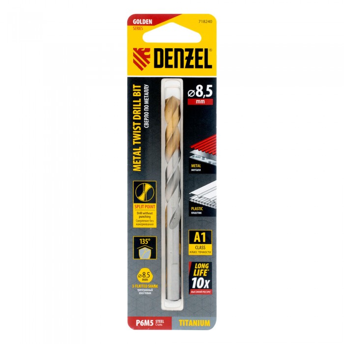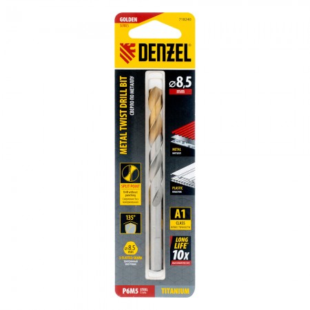 Сверло спиральное по металлу 8,5 x 117 мм, Р6М5, Golden Tip Denzel (718240)