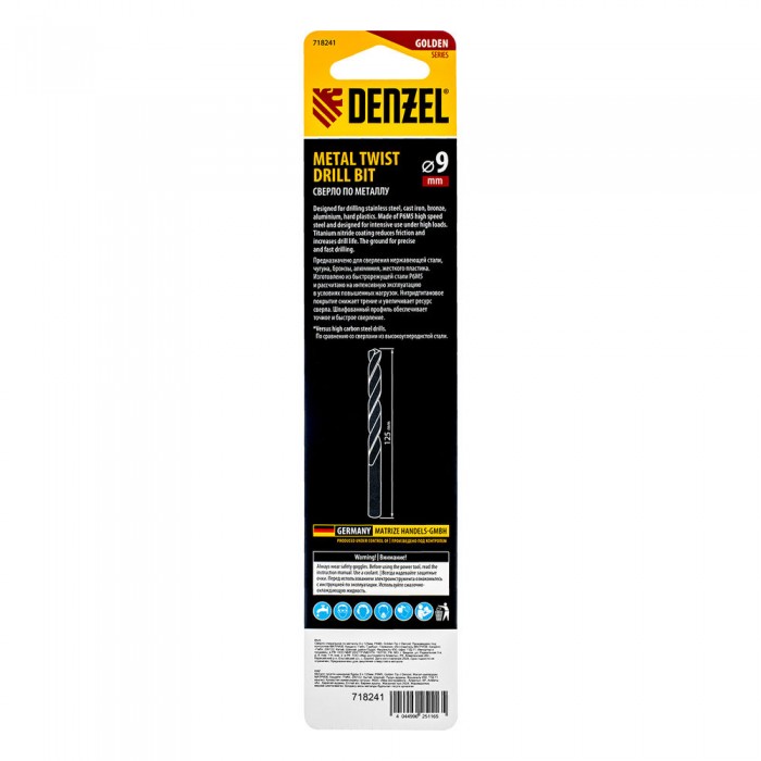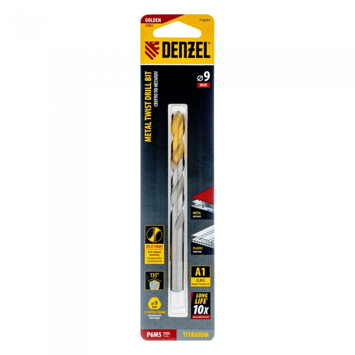 Сверло спиральное по металлу 9 x 125 мм, Р6М5, Golden Tip Denzel (718241)