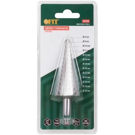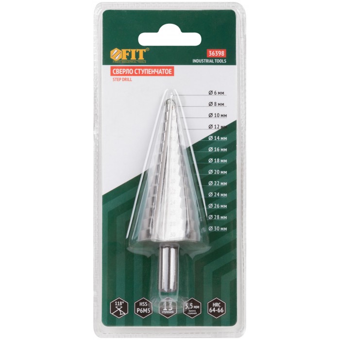 Сверло ступенчатое HSS ( Р6М5 ) по металлу, 13 ступеней, 6-30 мм
