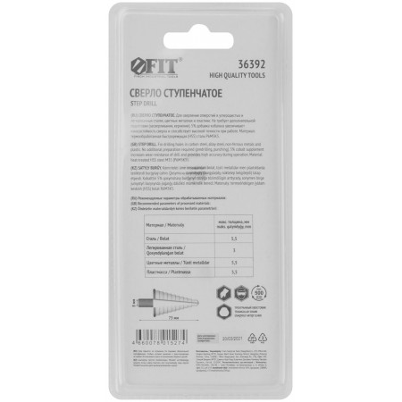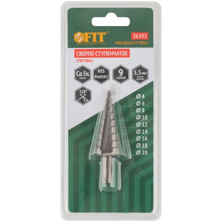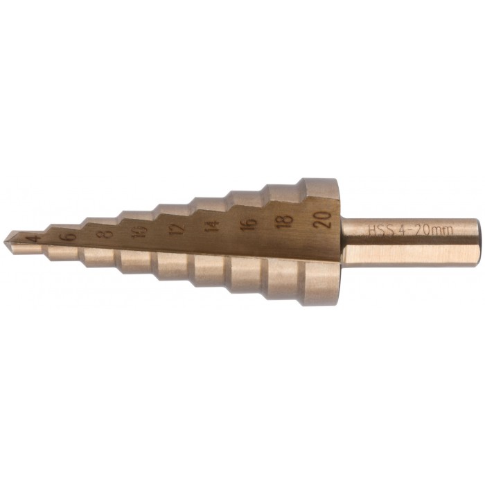 Сверло ступенчатое HSS Co5% ( Р6М5К5 ) по металлу, 9 ступеней, 4-20 мм