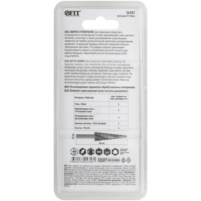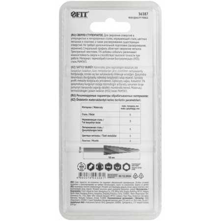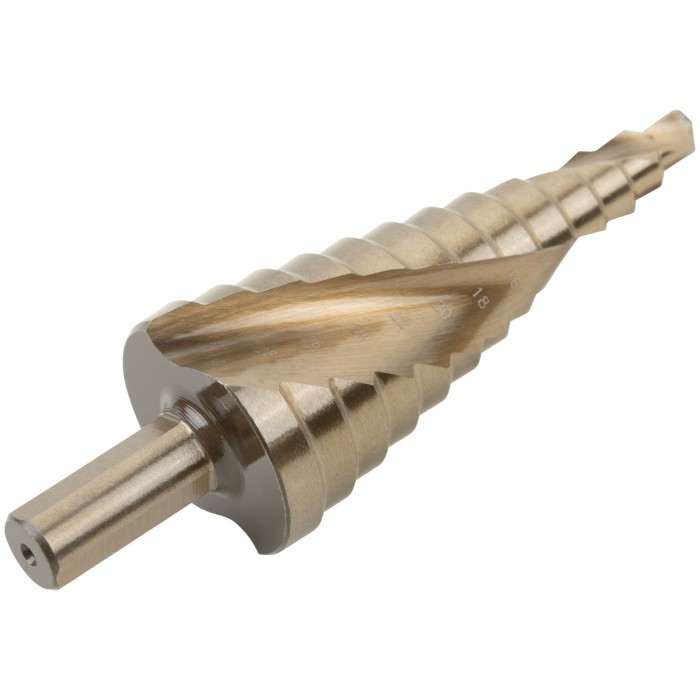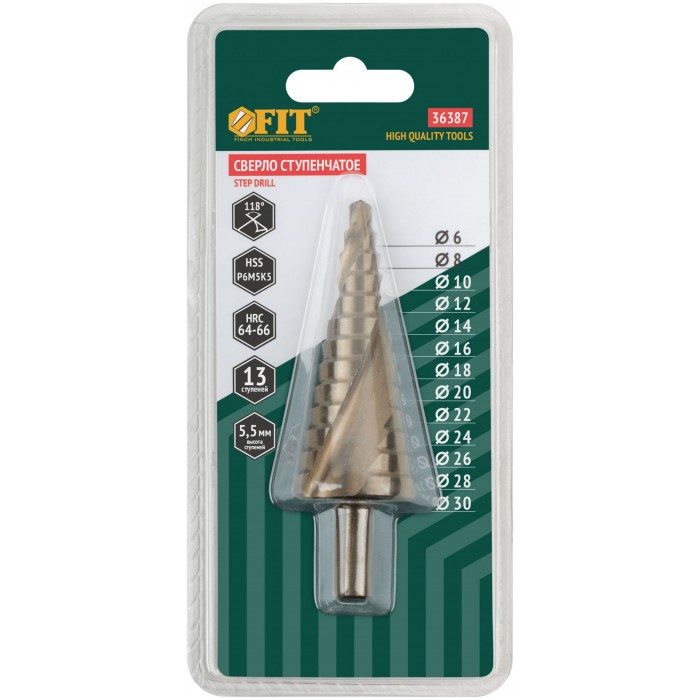 Сверло ступенчатое HSS Co5% ( Р6М5К5 ) по металлу, спиральный профиль, 13 ступеней, 6-30 мм