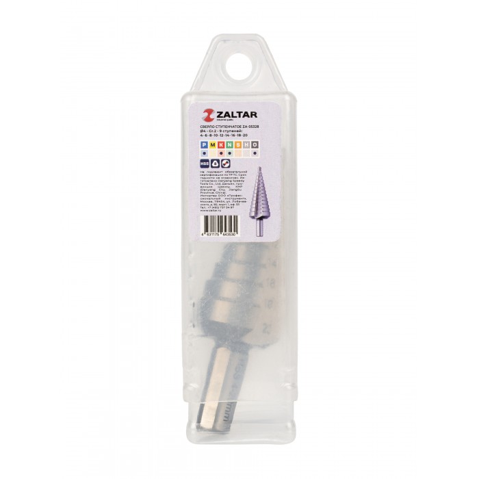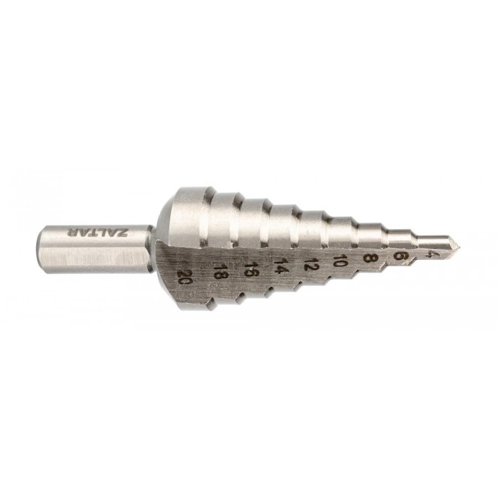 Сверло ступенчатое, HSS, Gr.2, O4-20 мм, прямая канавка, трёхплоскостной хвостовик (ZA-05328)