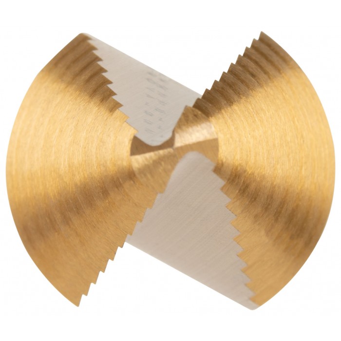 С нитридтитановым (TiN) покрытием. Для сверления и рассверливания отверстий в листовых материалах (сталь, цветные металлы, пластик). Трехгранный хвостовик (у 36381М U-образный хвостовик под биту). Материал: быстрорежущая (HSS) сталь. Упаковка: пластиковая туба.