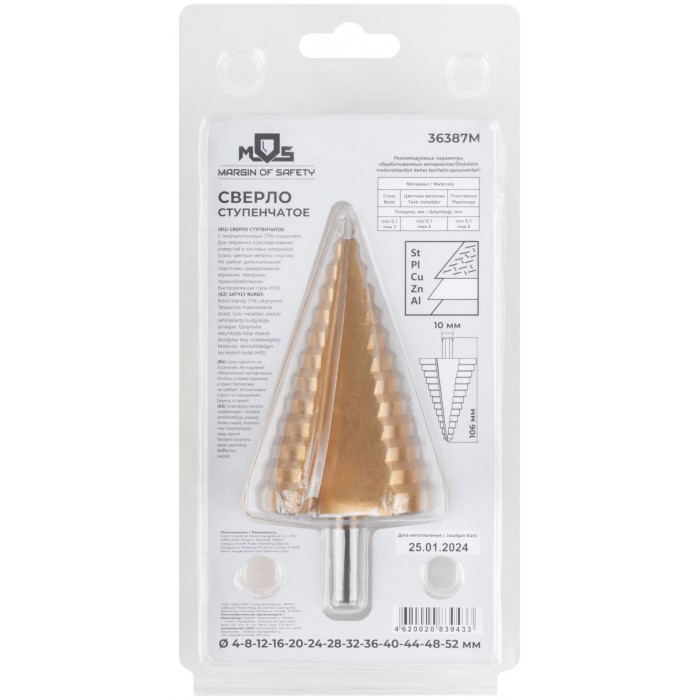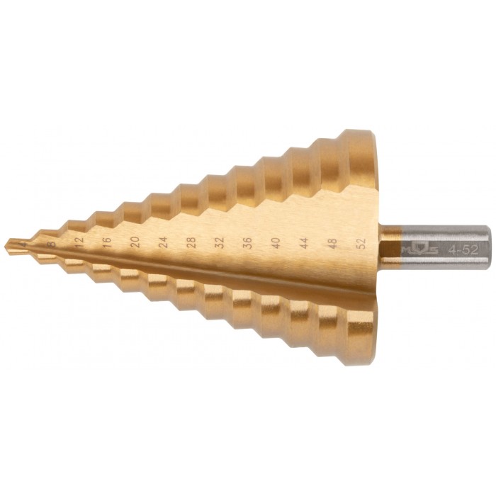 Сверло ступенчатое HSS по металлу, 13 ступеней 4-8-12-16-20-24-28-32-36-40-44-48-52 мм