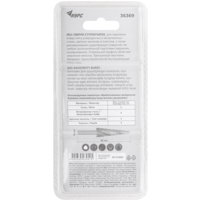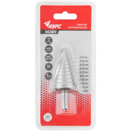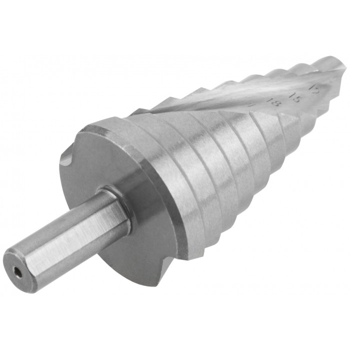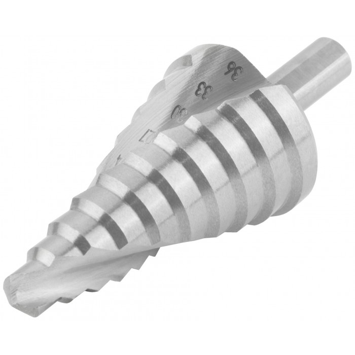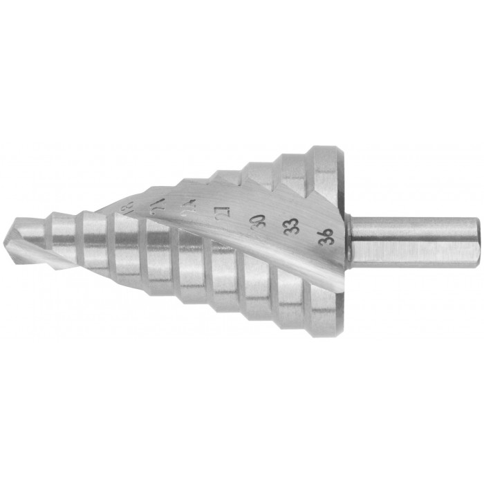 Сверло ступенчатое HSS по металлу, спиральный профиль, 10 ступеней, 9-36 мм