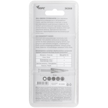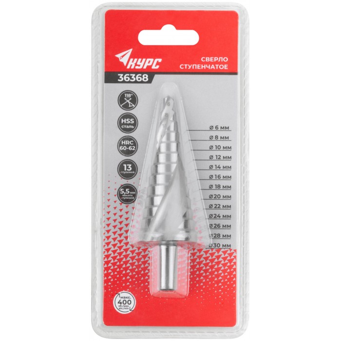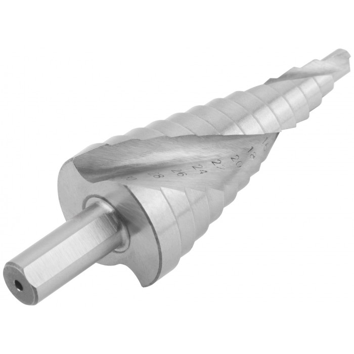 Сверло ступенчатое HSS по металлу, спиральный профиль, 13 ступеней, 6-30 мм