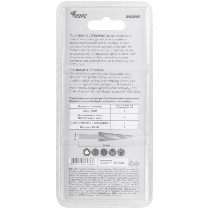 Для сверления и рассверливания отверстий в листовых материалах (сталь, цветные металлы, пластик). Не требует дополнительной подготовки (засверливания, кернения). Спиральный профиль облегчает сверление металла. Трехгранный хвостовик. Материал: полированная быстрорежущая (HSS) сталь. Упаковка: двойной блистер.