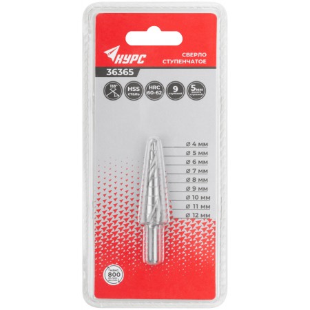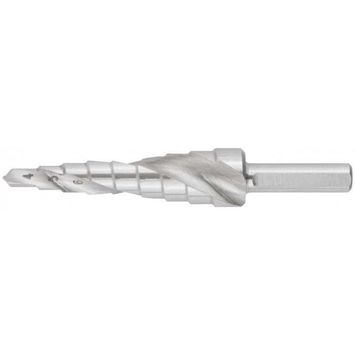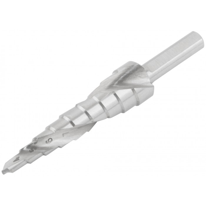 Сверло ступенчатое HSS по металлу, спиральный профиль, 9 ступеней, 4-12 мм