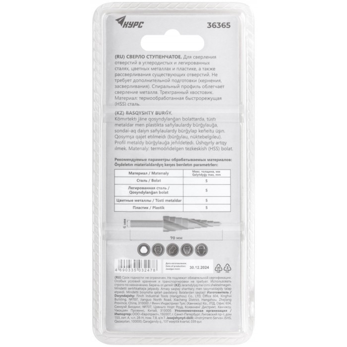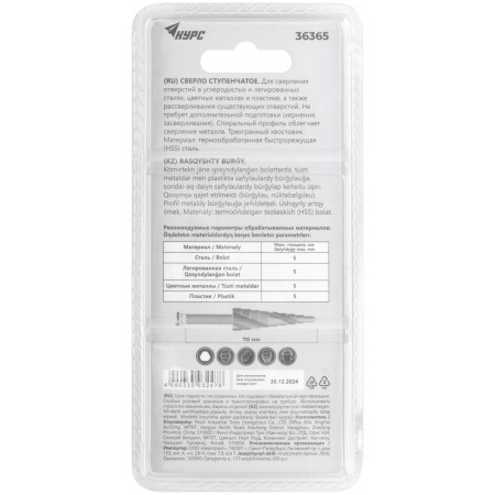 Для сверления и рассверливания отверстий в листовых материалах (сталь, цветные металлы, пластик). Не требует дополнительной подготовки (засверливания, кернения). Спиральный профиль облегчает сверление металла. Трехгранный хвостовик. Материал: полированная быстрорежущая (HSS) сталь. Упаковка: двойной блистер.