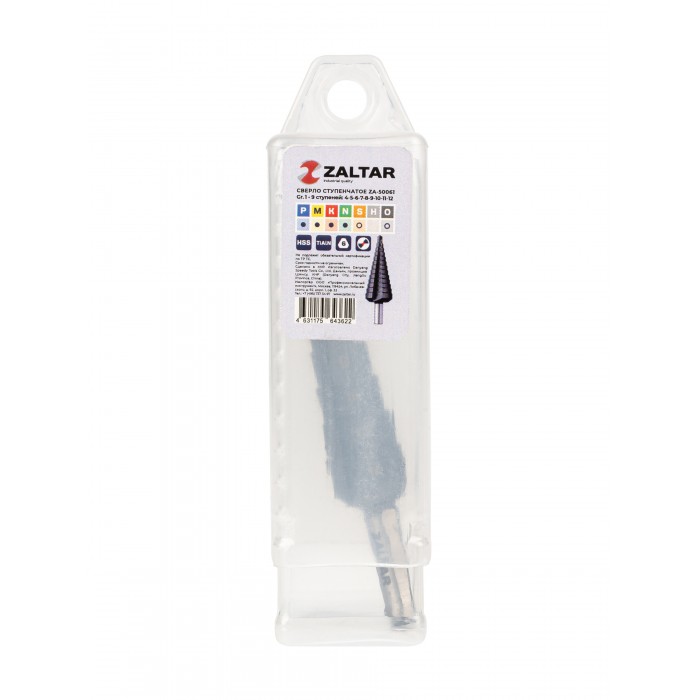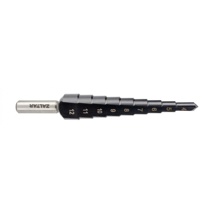 Сверло ступенчатое, HSS TiAlN, Gr.1, O4-12 мм, прямая канавка, трёхплоскостной хвостовик (ZA-50061)
