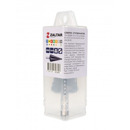 Сверло ступенчатое, HSS TiAlN, Gr.3, O6-30 мм, прямая канавка, трёхплоскостной хвостовик (ZA-50068)