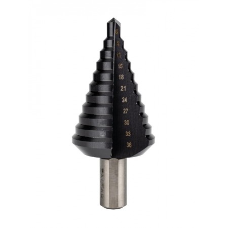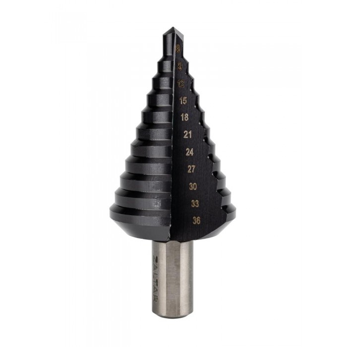 Сверло ступенчатое, HSS TiAlN, O9-36 мм, прямая канавка, трёхплоскостной хвостовик (ZA-50069)