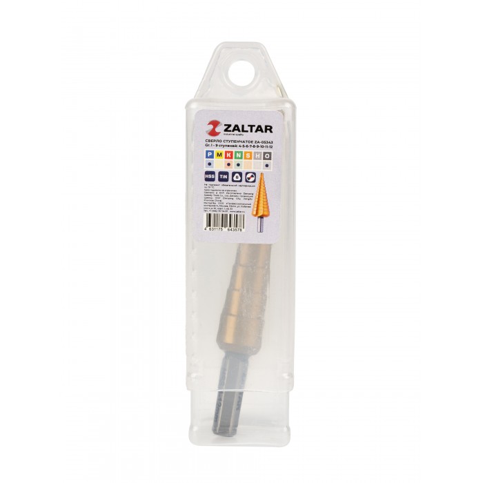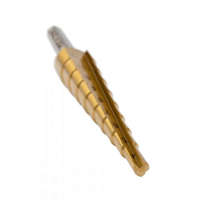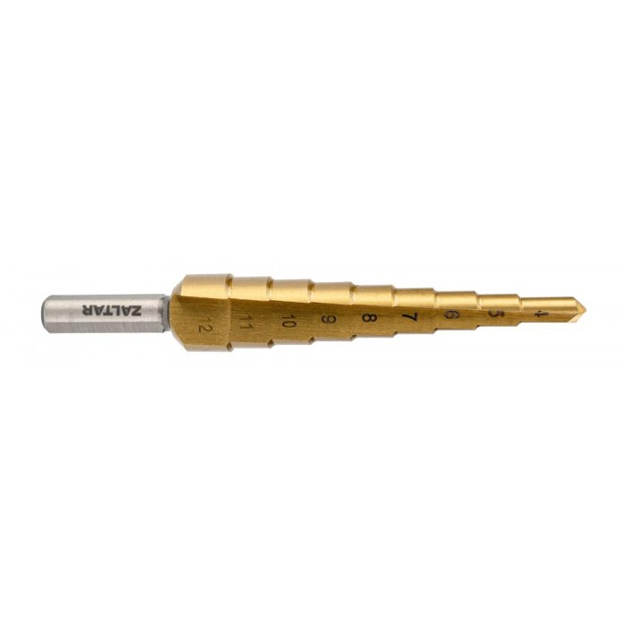 Сверло ступенчатое, HSS TiN, Gr.1, O4-12 мм, прямая канавка, трёхплоскостной хвостовик (ZA-05343)