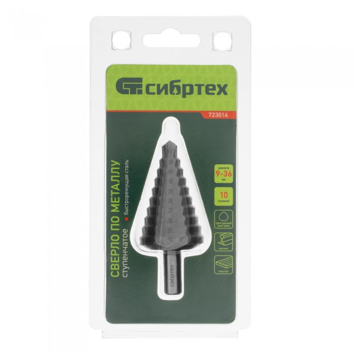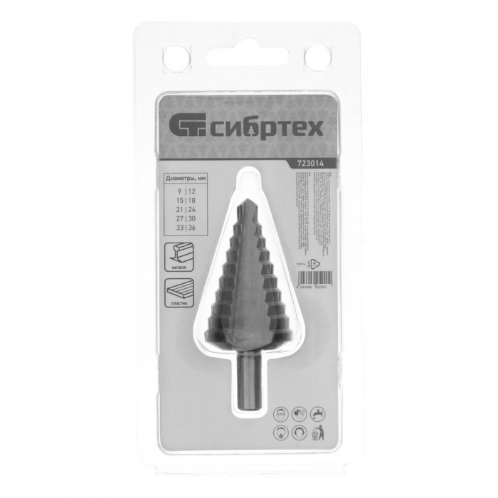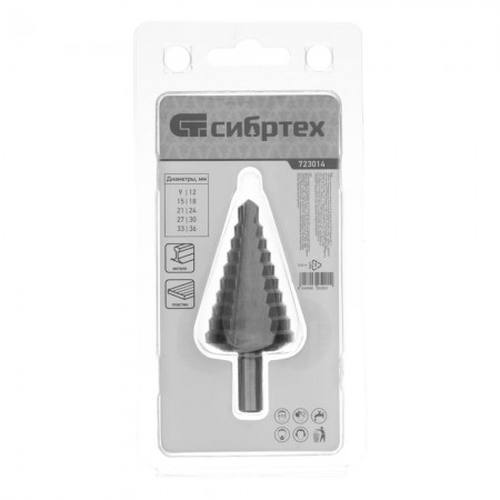 Сверло ступенчатое по металлу, 9-12-15-18-21-24-27-30-33-36 мм, 4241 Сибртех (723014)