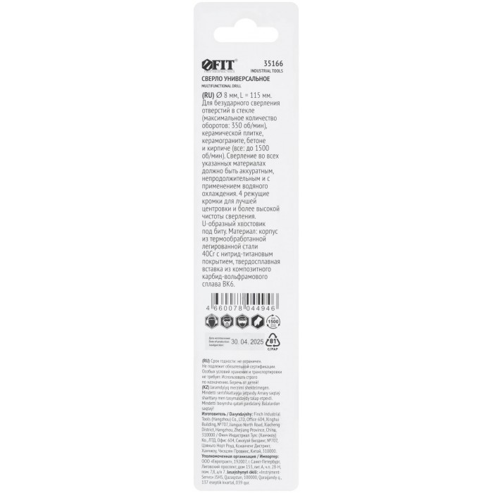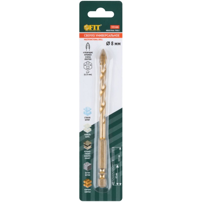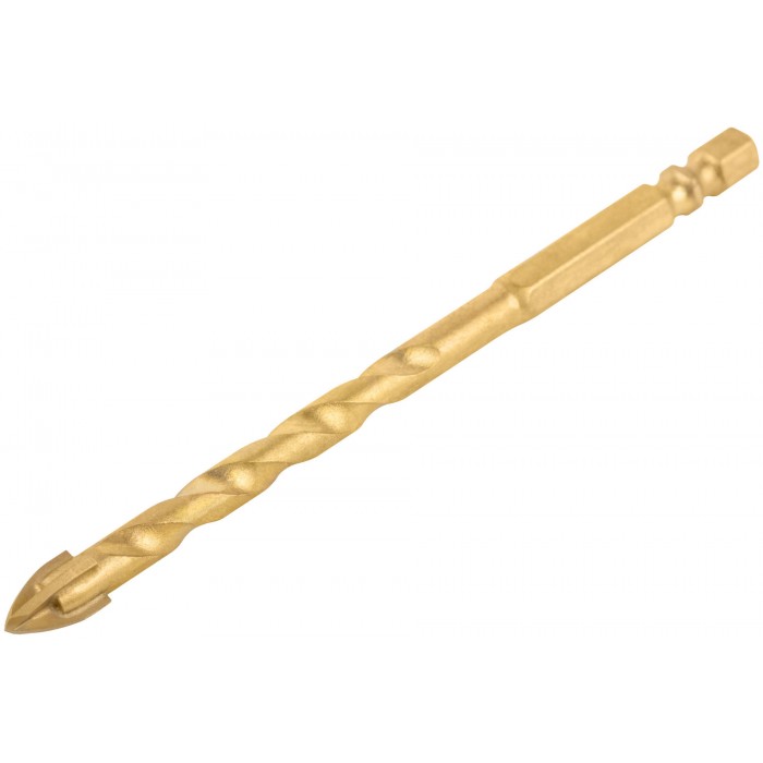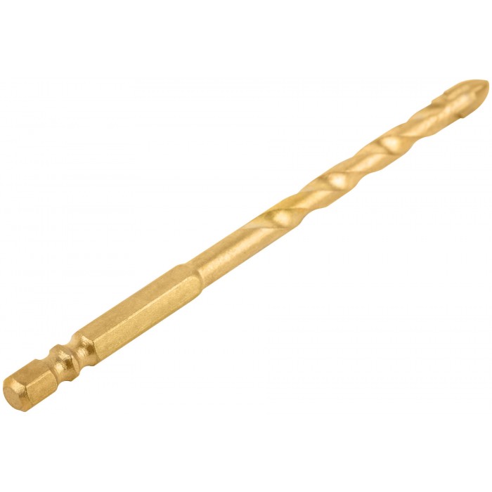 Сверло универсальное, 4 режущие кромки, титановое покрытие, шестигранный U-хвостовик под биту, 8х115 мм (35166)