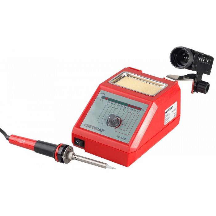 Аналоговая паяльная станция СВЕТОЗАР SV-55331 применяется для выполнения паяльных работ, которые требуют бережной и осторожной пайки при определенных температурах.