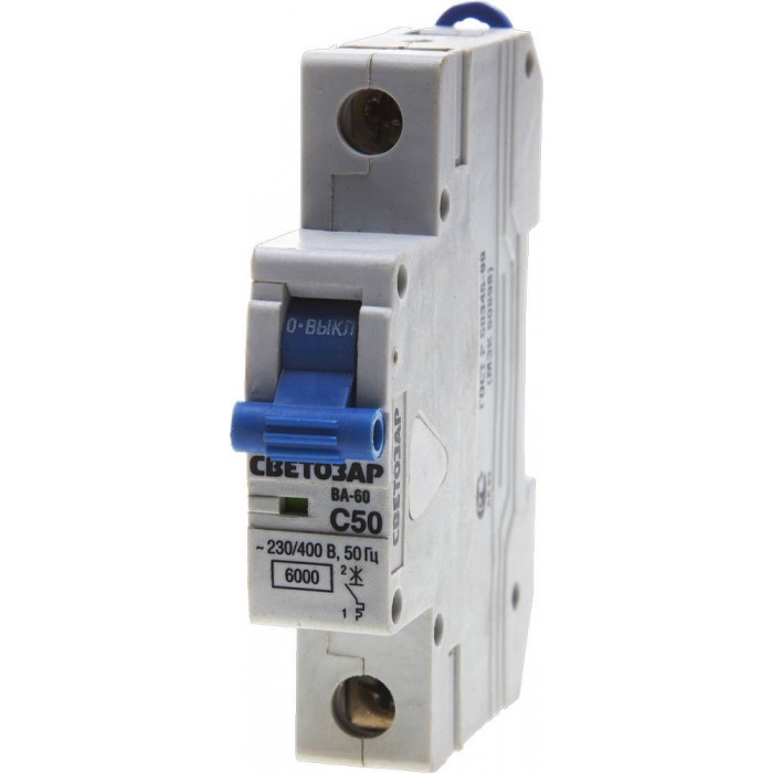 Автоматический выключатель ВА-60, 1P, 50А, C, 6кА СВЕТОЗАР SV-49061-50-C