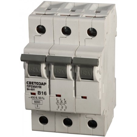 Автоматический 3-полюсный выключатель СВЕТОЗАР ″ПРЕМИУМ″ ″B″, 6 кА, 400 В предназначен для защиты электрических сетей жилых и административных зданий. Он образует размыкание цепи при перегрузке в сети и коротком замыкании. Прибор выключает сеть при 3-5 кратном превышении номинальной силы тока. Выключатель превосходит параметры ГОСТ (от -5°С до +40°С), поскольку устойчив к температурам от -40°С до +45°С.