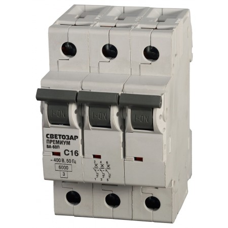 Автоматический 3-полюсный выключатель СВЕТОЗАР ″ПРЕМИУМ″ ″C″, 6 кА, 400 В выполняет функцию защиты установок от перегрузок и коротких замыканий. Он применяются в промышленных зданиях. Главная особенность при выборе выключателя: он должен соответствовать напряжению и расчётному току цепи. Прибор выключает сеть при 5-10 кратном превышении номинальной силы тока. Выключатель превосходит параметры ГОСТ (от -5°С до +40°С), поскольку устойчив к температурам от -40°С до +45°С.