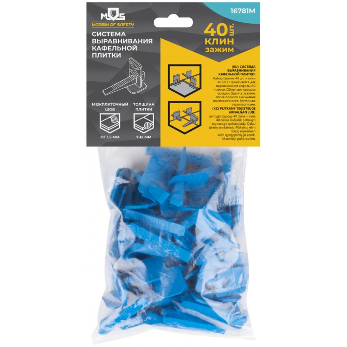 СВП ( Система Выравнивания Плитки), Зажимы 40 шт. и Клинья 40 шт., набор ( синие ) (16781М)