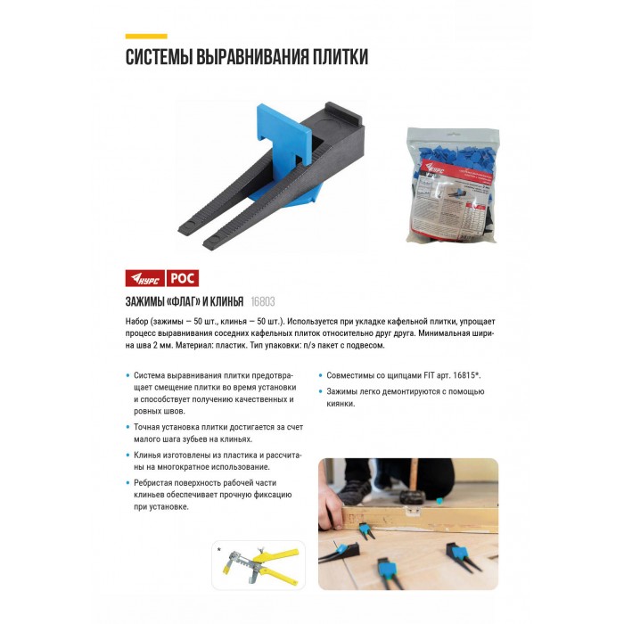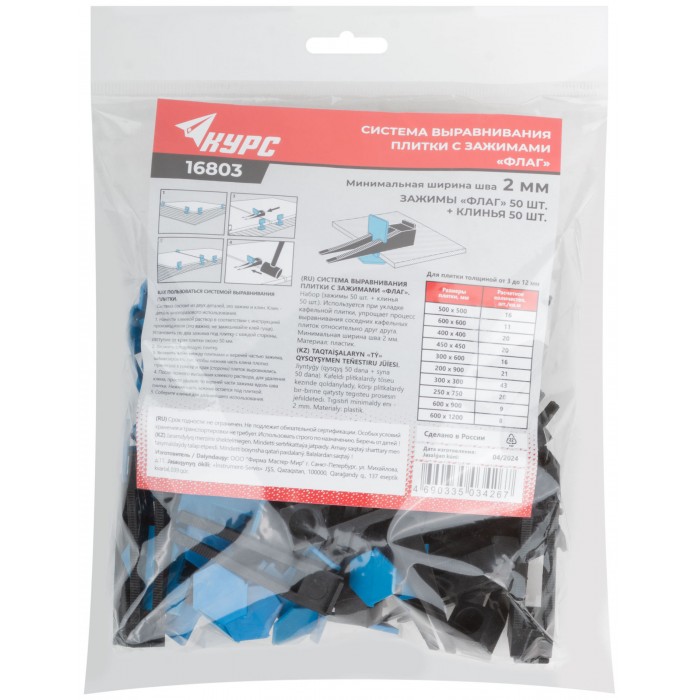 СВП ( Система Выравнивания Плитки), Зажимы "Флаг" 50 шт. и Клинья 50 шт., набор, ширина шва 2,0 мм (16803)