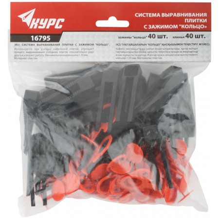 СВП ( Система Выравнивания Плитки), Зажимы "Кольцо" 40 шт. + Клинья 40 шт., набор, ширина шва 1,35 мм (16795)