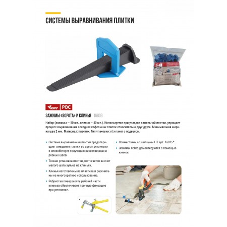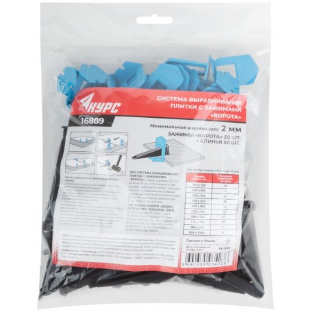 СВП ( Система Выравнивания Плитки), Зажимы "Ворота" 50 шт. и Клинья 50 шт., набор, ширина шва 2,0 мм (16809)