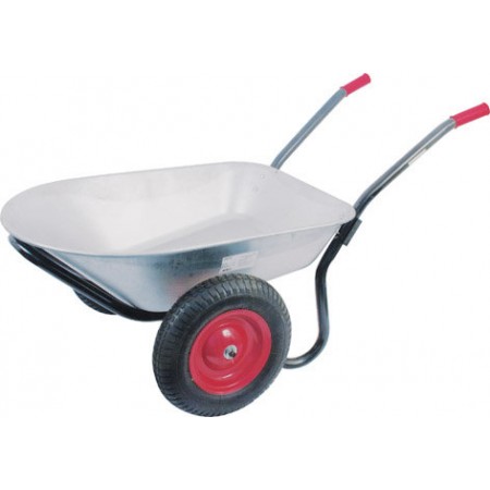 Двухколесная. Грузоподъемность 150 кг. Объем 78 л. Диаметр надувного колеса 390 х 90 мм. Тип колеса 4,80'' / 4,00'' - 8''. Вес тачки 11,8 кг Кузов: стальной оцинкованный. Рама из стальных труб, окрашенная. Прорезиненые ручки. Может использоваться с колесами 77562д, 77567, 77587.