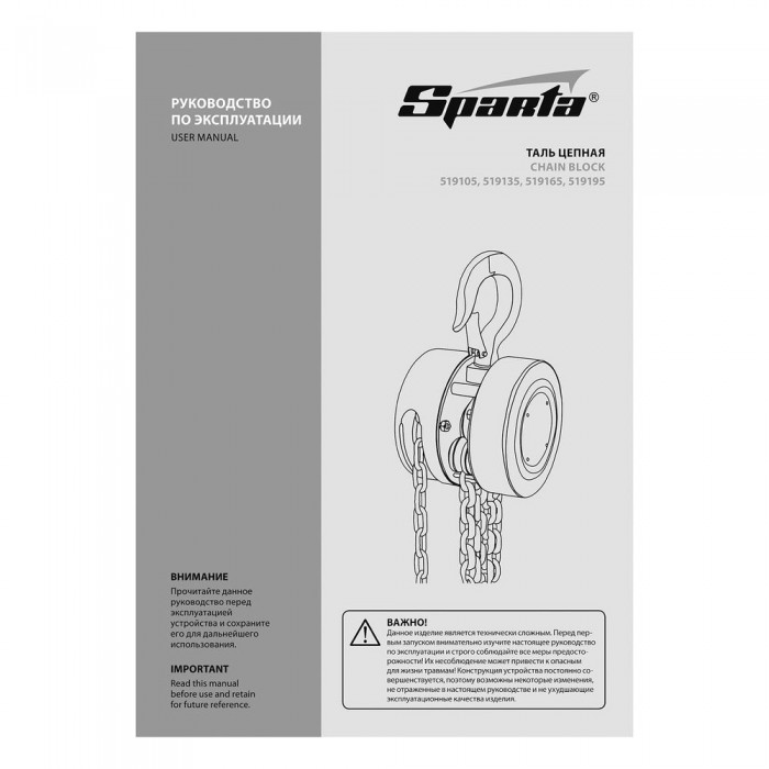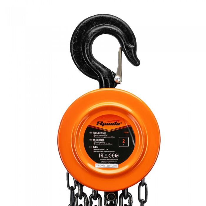 Таль цепная, 2 т, H подъема 2.5 м, расстояние между крюками 380 мм Sparta (519165)
