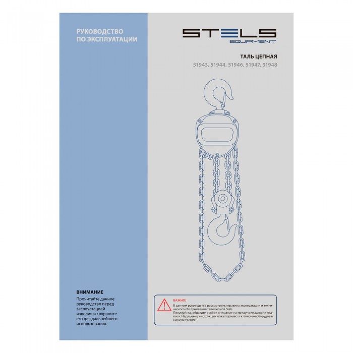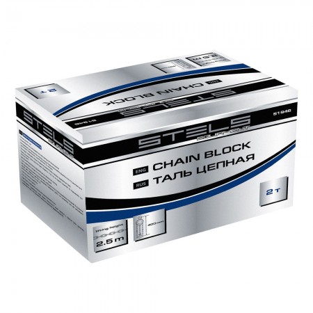 Таль цепная, 2 т, h подъема 2.5 м, расстояние между крюками 400 мм Stels (51946)
