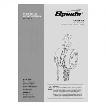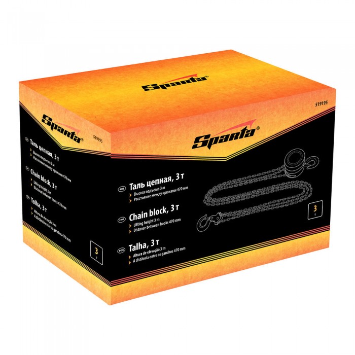 Таль цепная, 3 т, H подъема 3 м, расстояние между крюками 470 мм Sparta (519195)