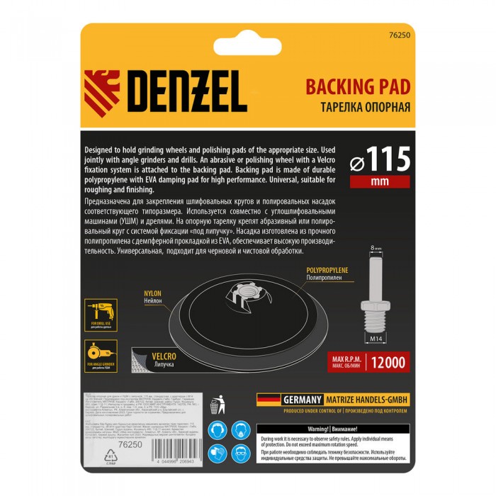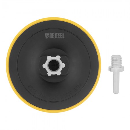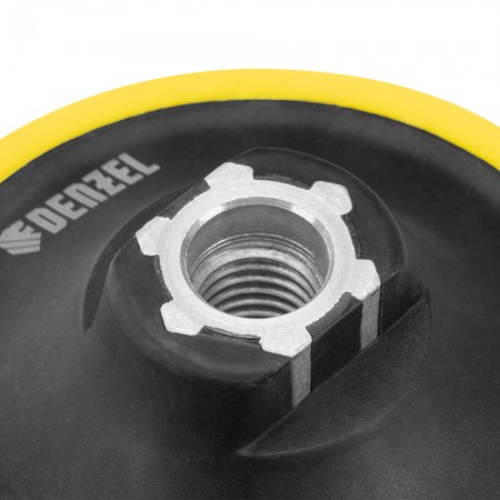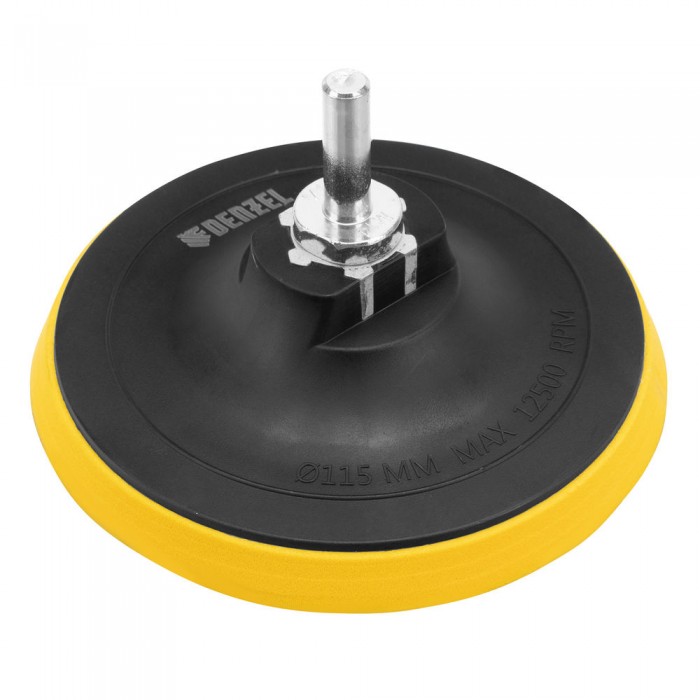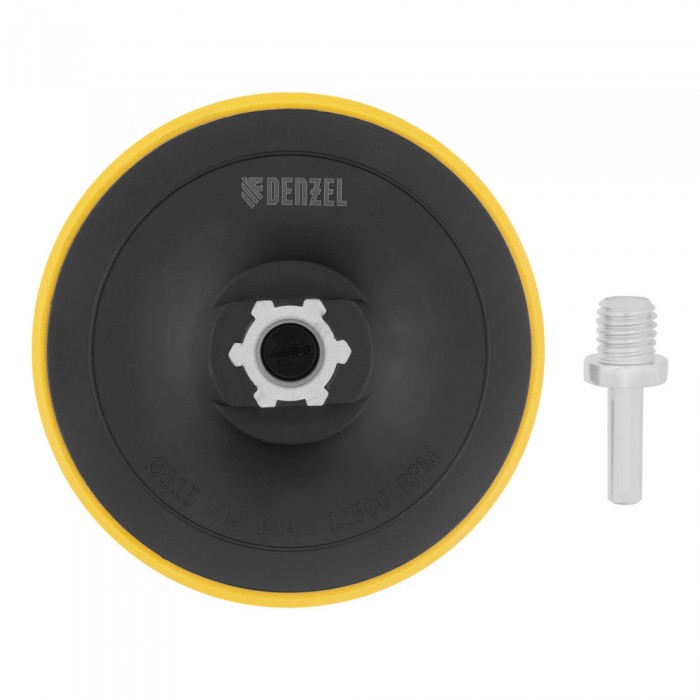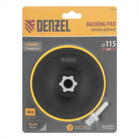 Тарелка опорная для дрели и УШМ с липучкой, 115 мм, стандартная, с адаптером c М14 на d8 Denzel (76250)