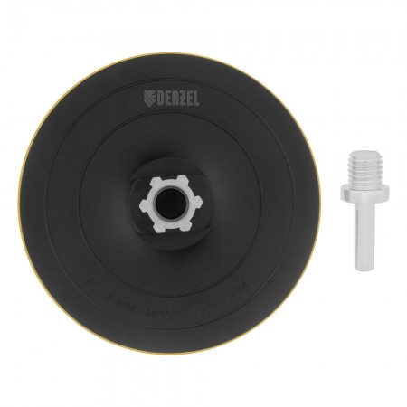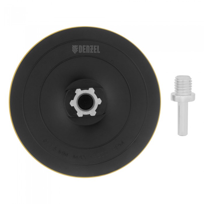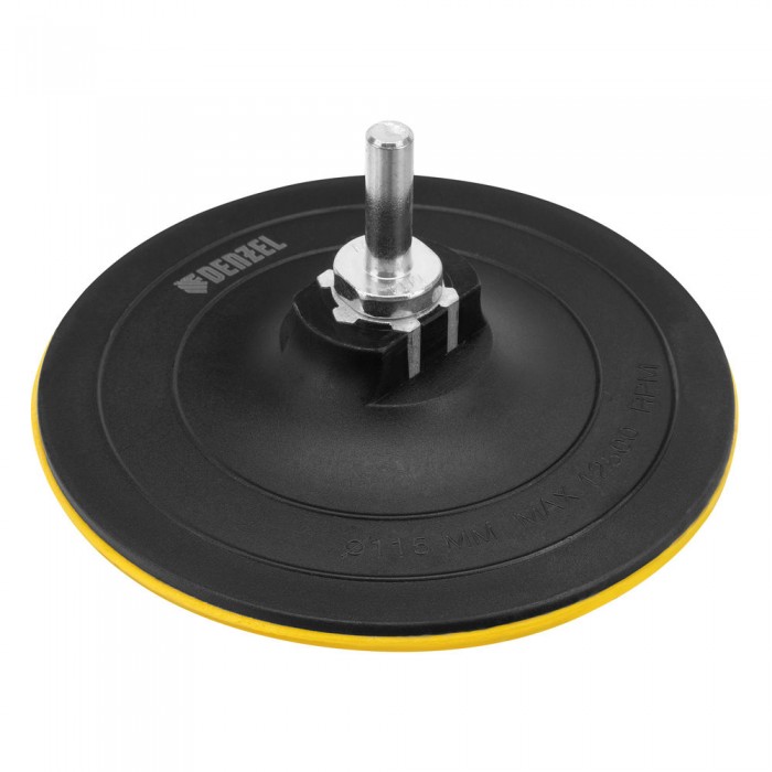 Тарелка опорная для дрели и УШМ с липучкой, 115 мм, твердая, с адаптером c М14 на d8 Denzel (76253)