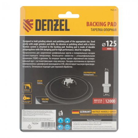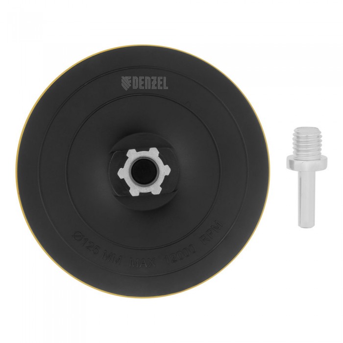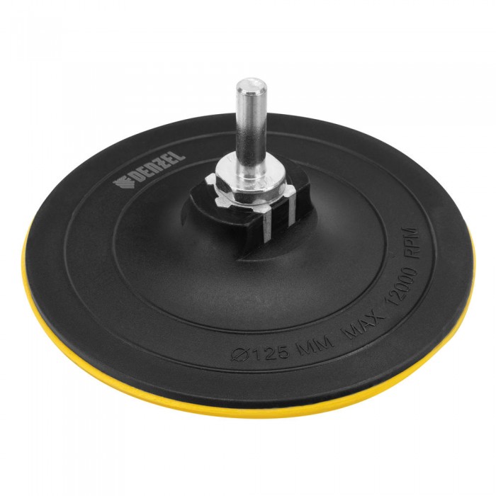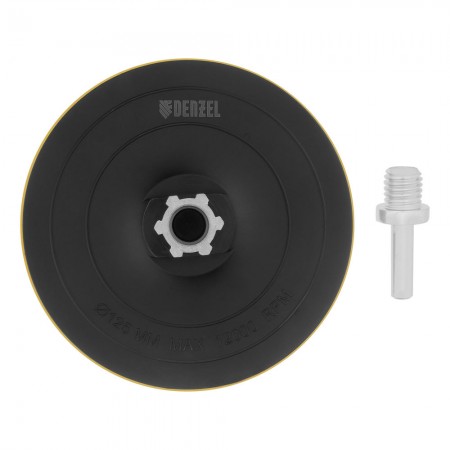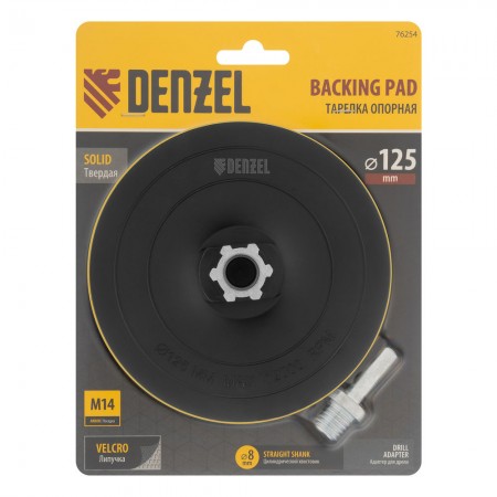 Тарелка опорная для дрели и УШМ с липучкой, 125 мм, твердая, с адаптером c М14 на d8 Denzel (76254)