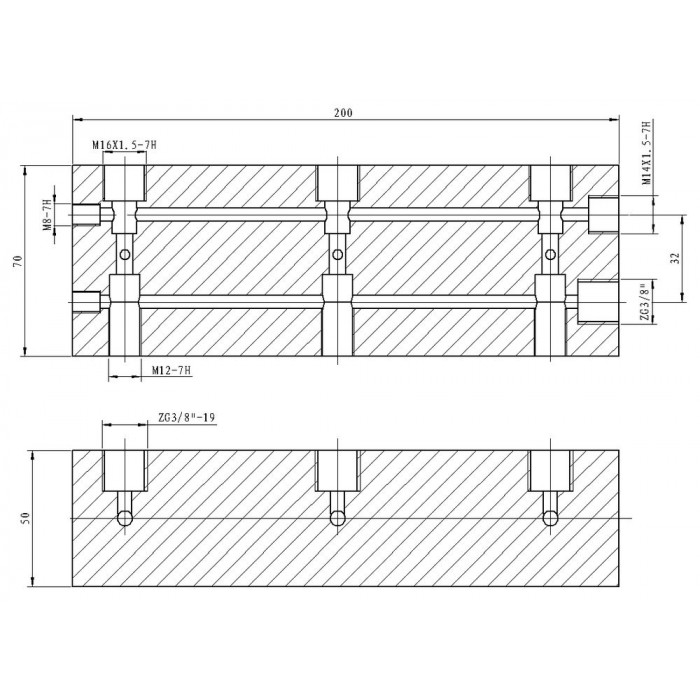 Кран гидравлический распределительный; 700 бар; 3 потребителя; 3/8"-внут, ТЕХРИМ, КГР7-3