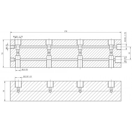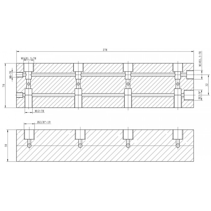 Кран гидравлический распределительный; 700 бар; 4 потребителя; 3/8"-внут, ТЕХРИМ, КГР7-4