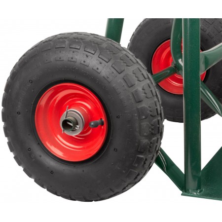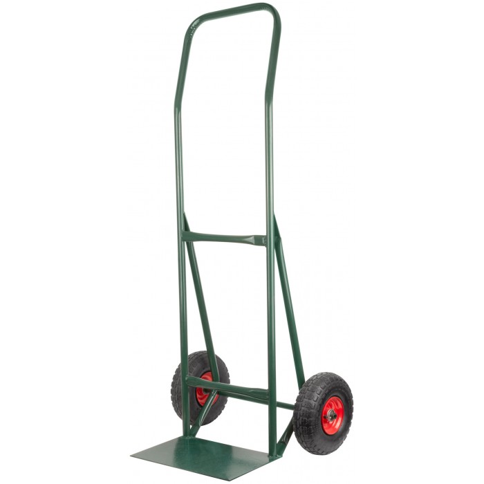 Ручная, 2-х колесная. Грузоподъемность 130 кг. Пневматические колеса. Диаметр колес 260 мм. Материал: сталь, резина, пластик.