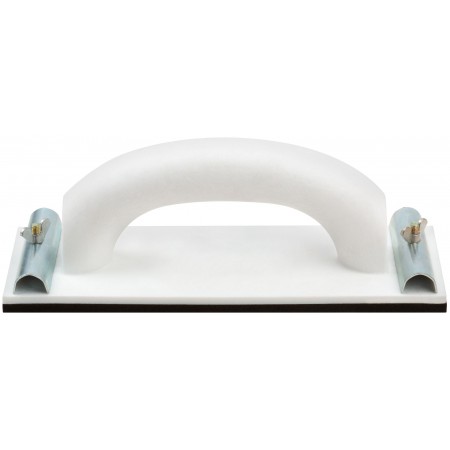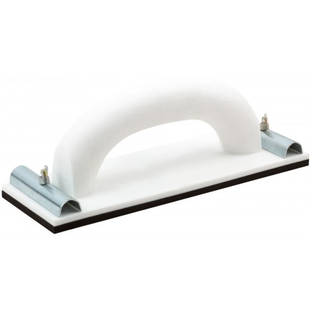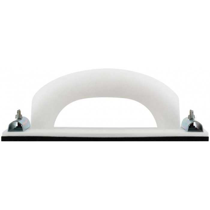 Для наждачной бумаги. Используется при обработке плоских поверхностей. Материал: пластик, с металлическим прижимом.