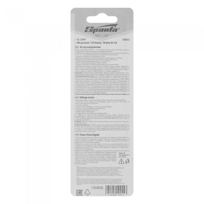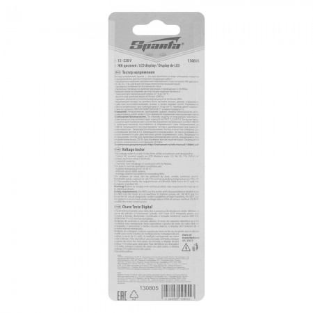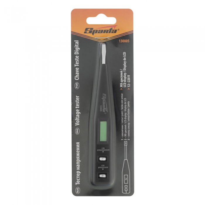 Тестер напряжения 12-220 В, жидкокристаллический дисплей Sparta (130805)