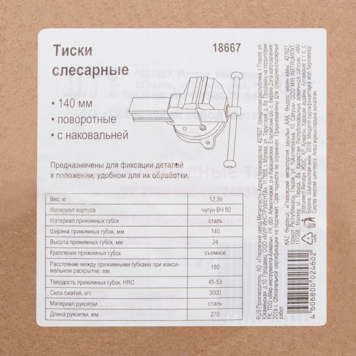 Тиски слесарные, 140 мм, поворотные (Глазов) Россия