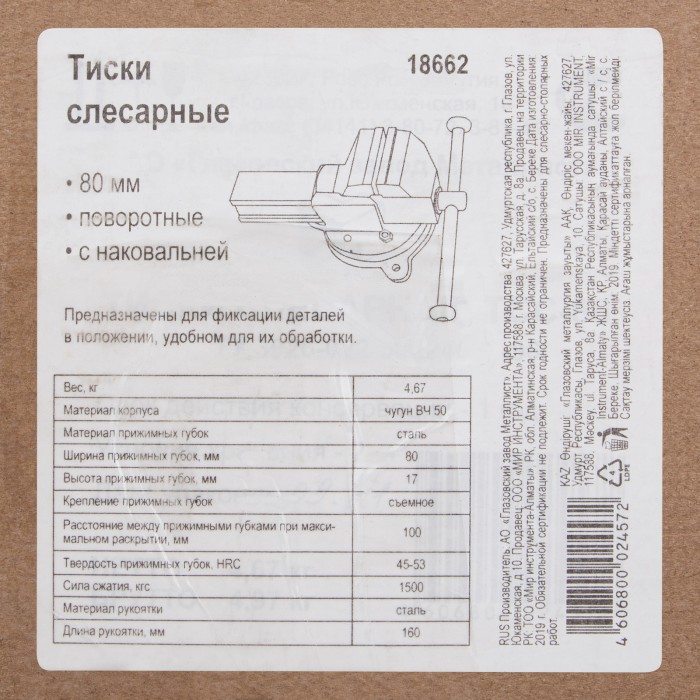 Тиски слесарные, 80 мм, поворотные (Глазов) Россия