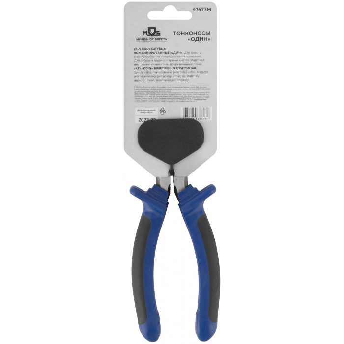 Тонконосы "Один" двухцветные обрезиненные ручки, полированная сталь 200 мм (47477М)