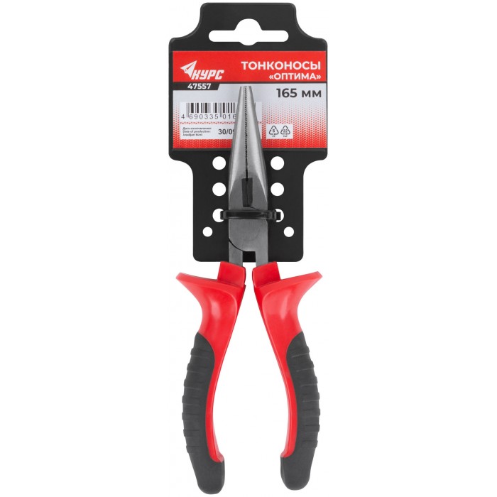 Тонконосы "Оптима", двухцветные обрезиненные ручки, полированная сталь 165 мм (47557)