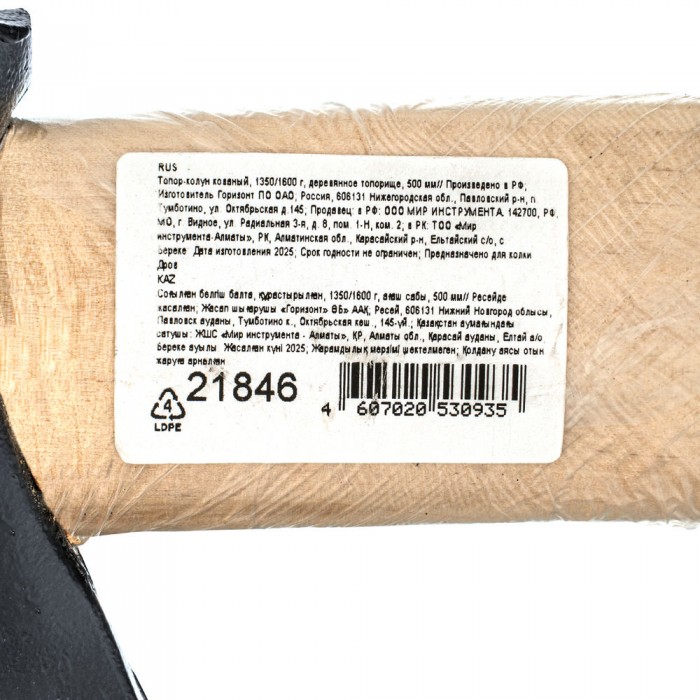 Топор-колун кованный, в сборе, 1350/1600 г, деревянное топорище, 500 мм, (Труд) г. Вача Россия